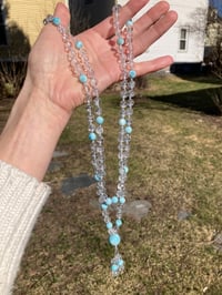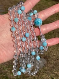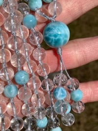 Dominican Larimar and Crystal Quartz Mala, Larimar 108 Bead Hand Knotted Gemstone Necklace